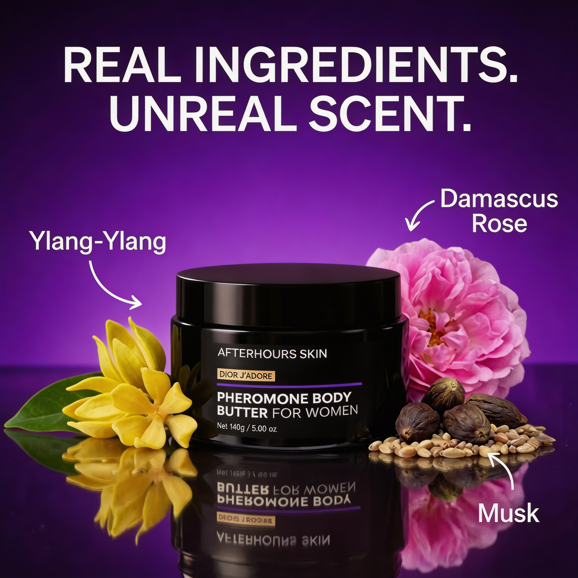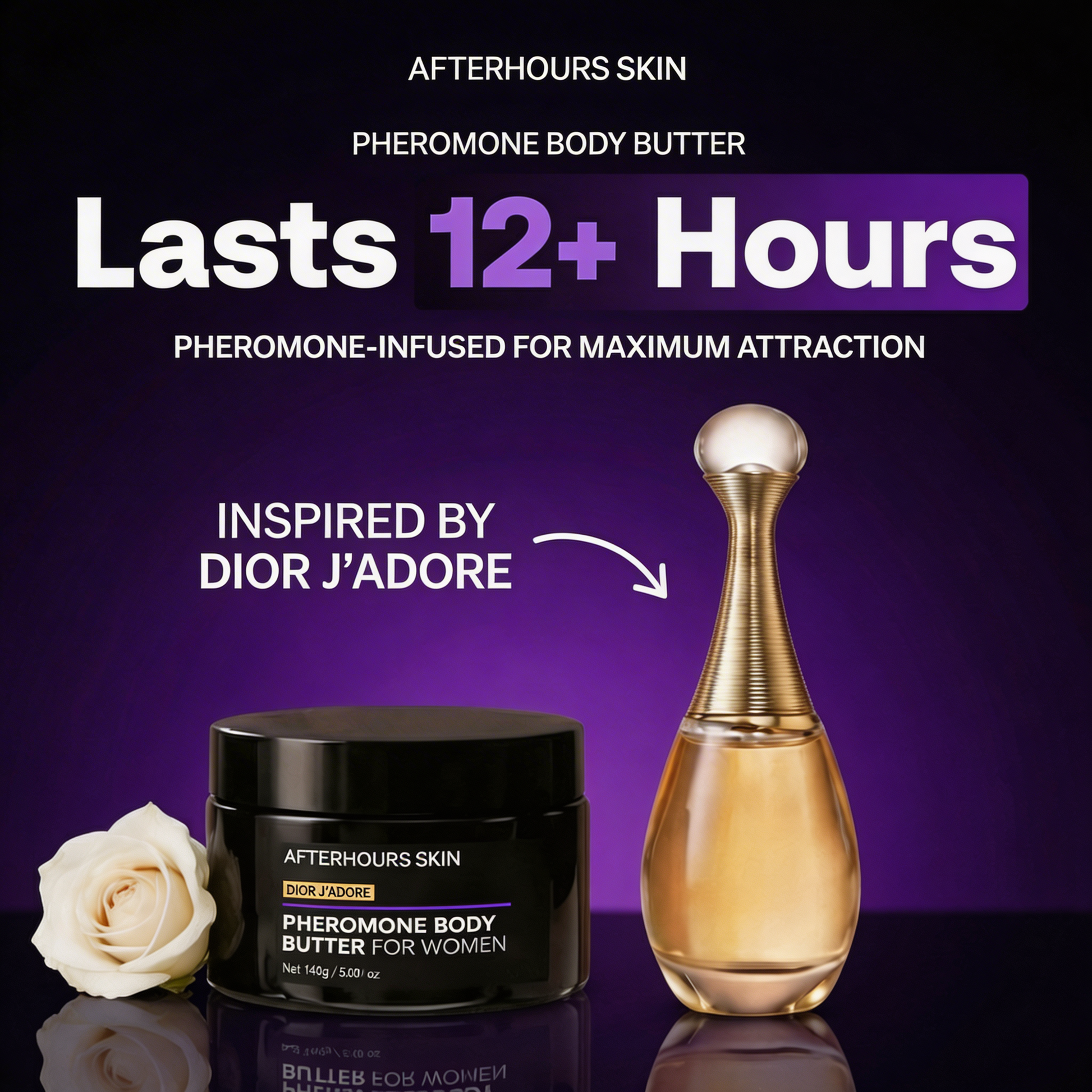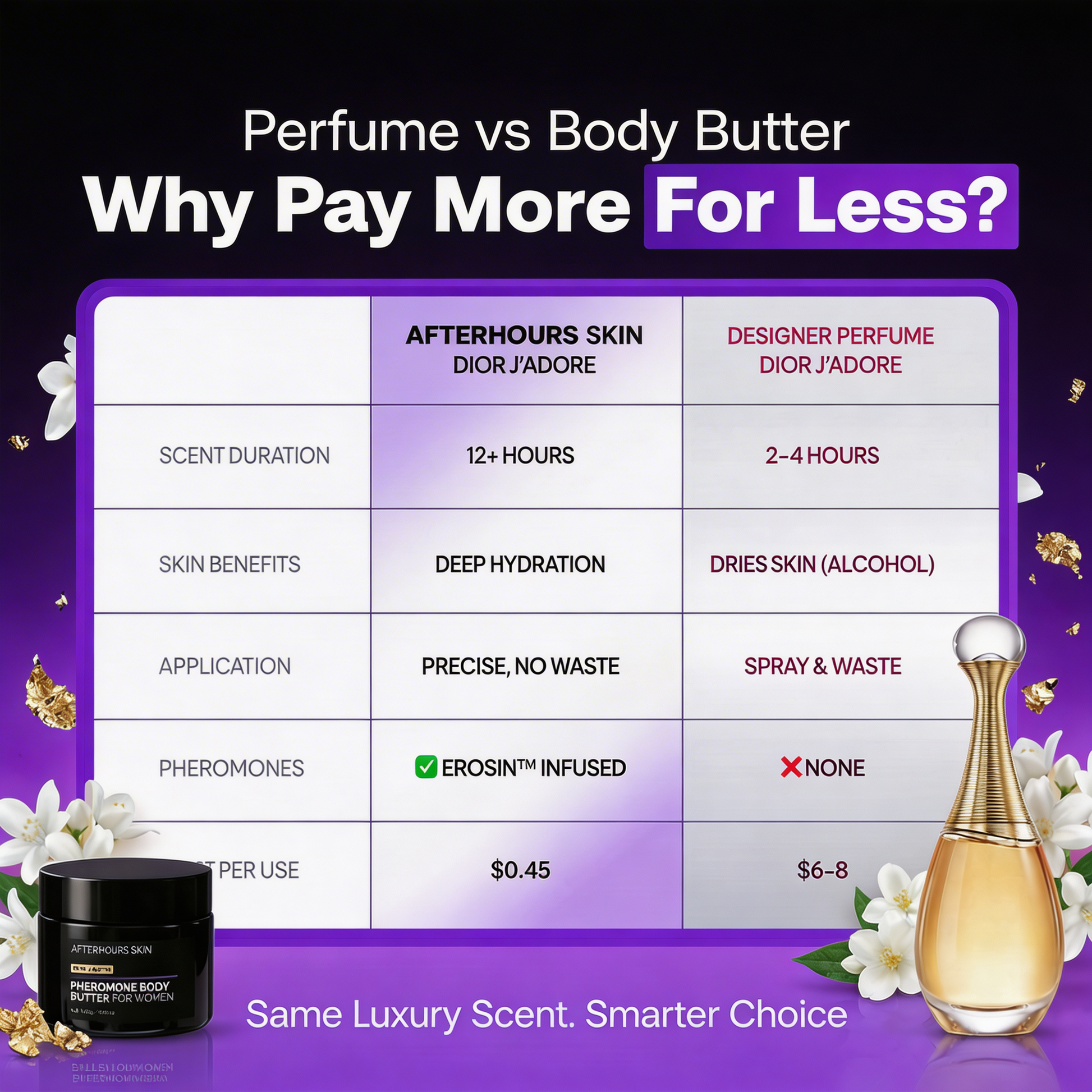 "Infused with pheromones. Designed to last. Smells like pure confidence. Join the thousands of women making it their signature scent."
